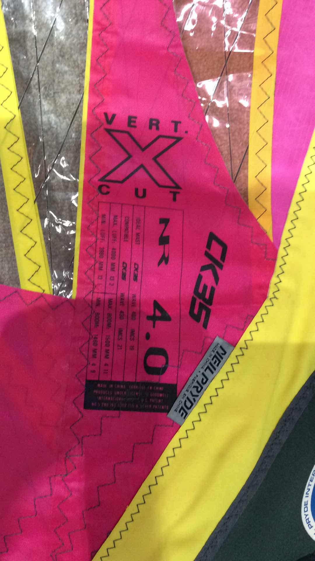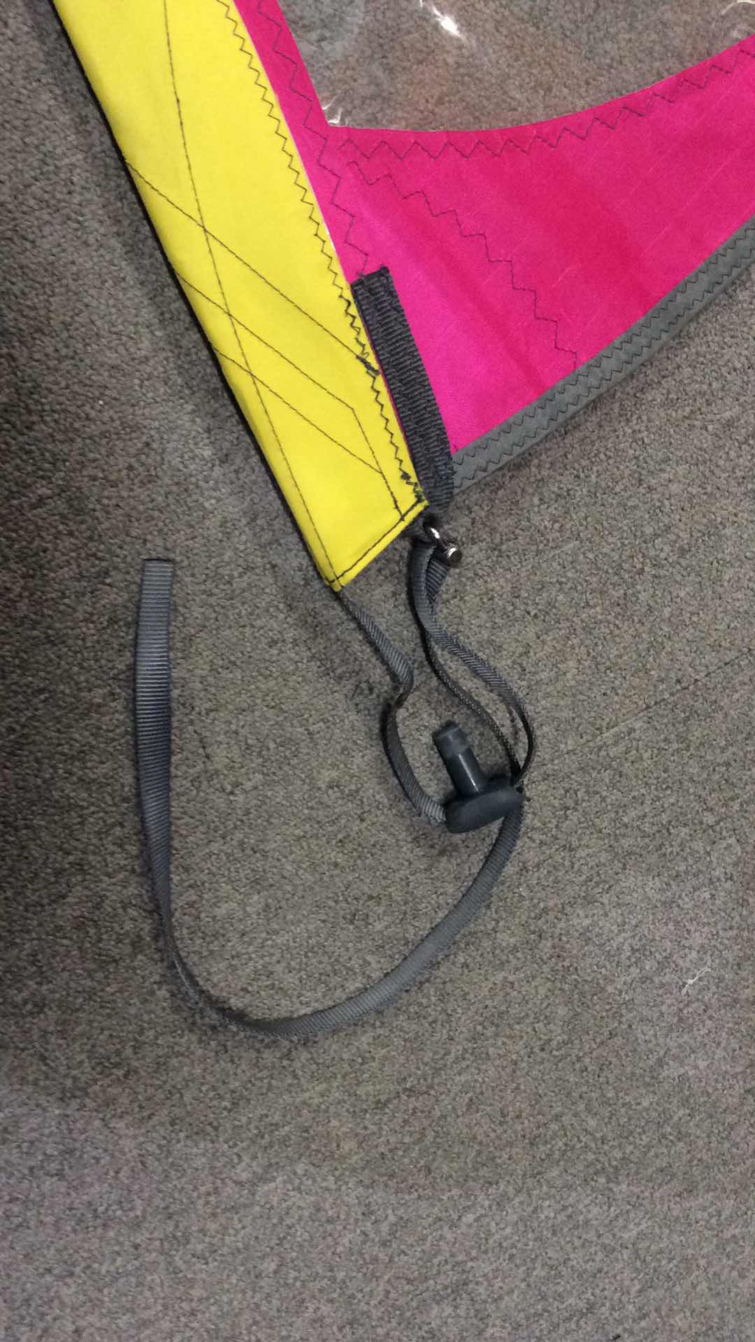 Wave sail for high winds. With adjustable head fits various mast lengths. Yellow Pink