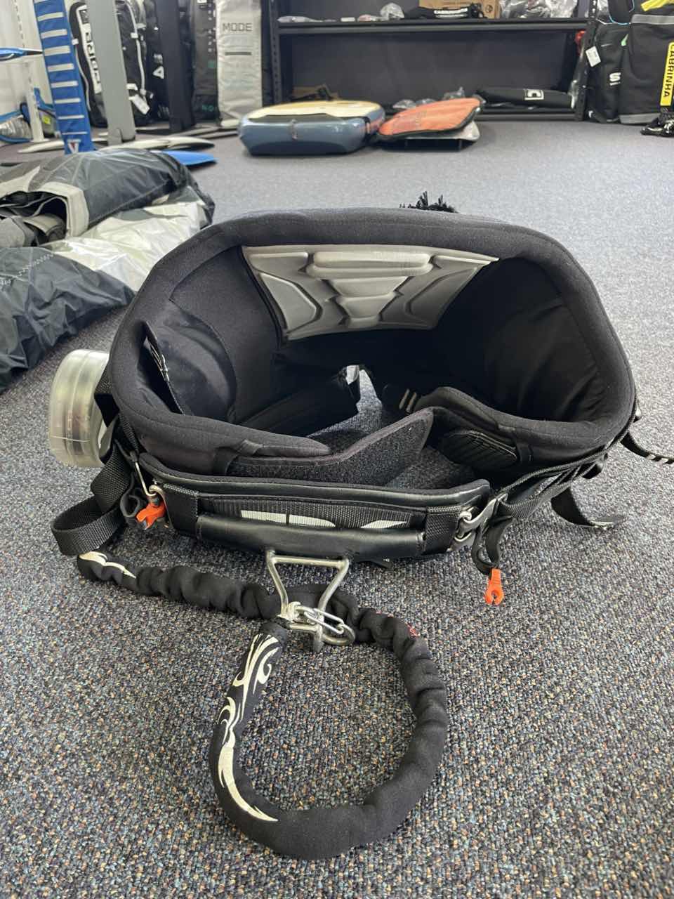 Good condition, size Medium, comes with a kite and a board leash